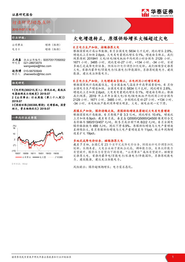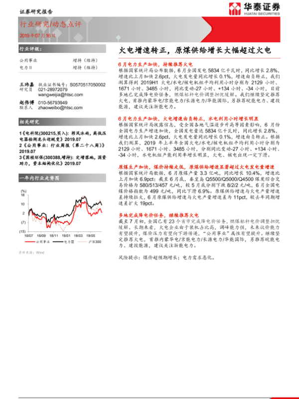 【华泰证券】【20190716】公用事业:火电增速转正,原煤供给增长大幅超过火电-5页