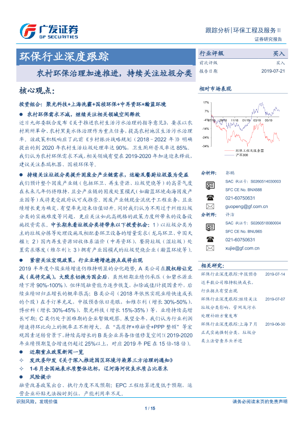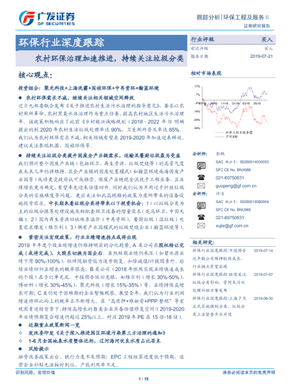 【广发证券】【20190721】环保行业深度跟踪:农村环保治理加速推进,持续关注垃圾分类-15页