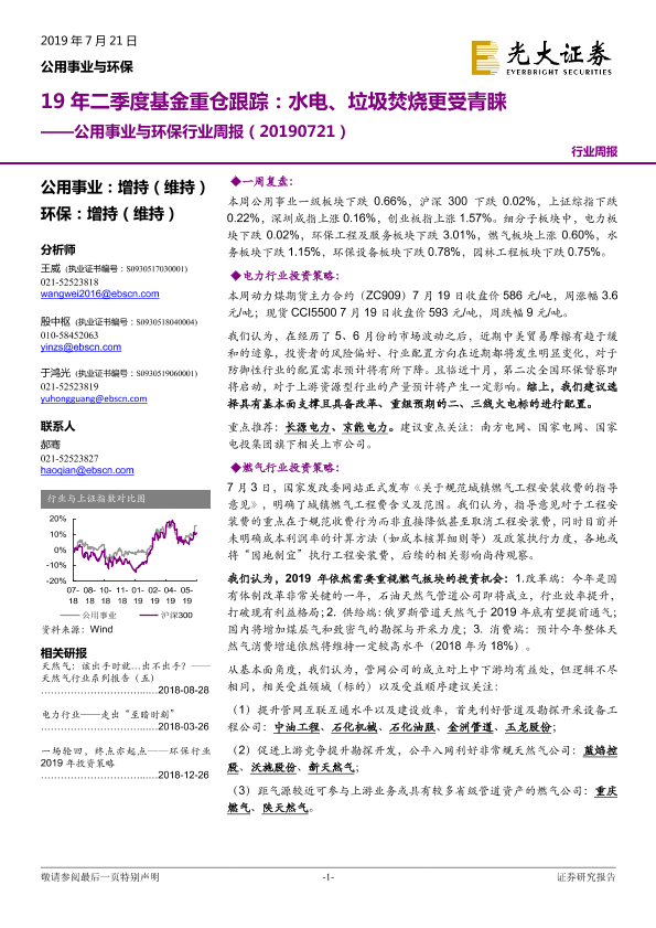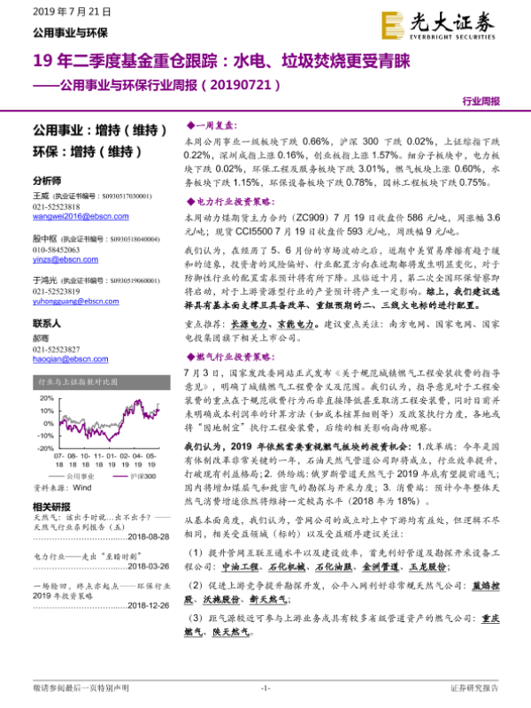 【光大证券】【20190721】19年二季度基金重仓跟踪:水电、垃圾焚烧更受青睐-22页