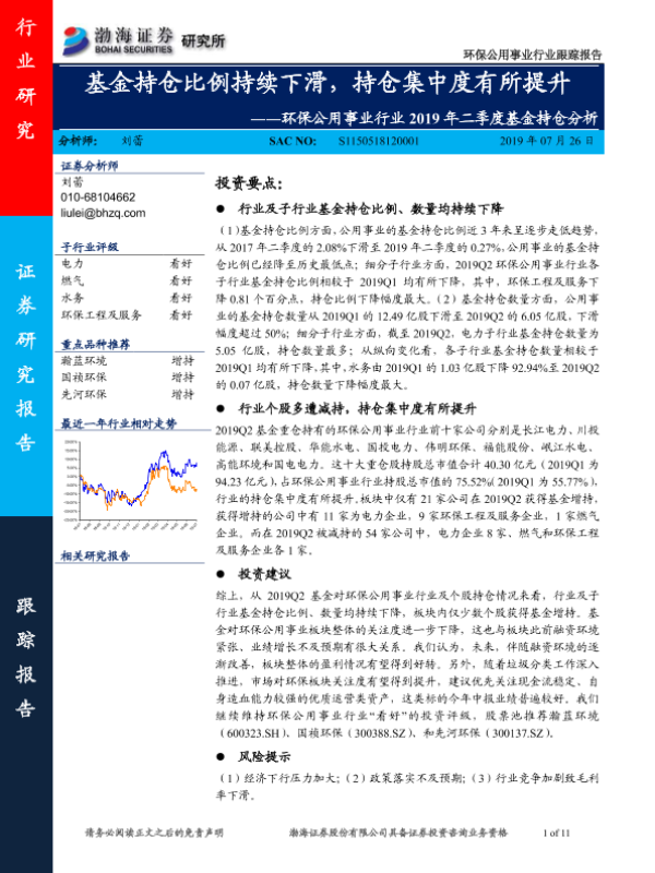 【渤海证券】【20190726】环保公用事业行业2019年二季度基金持仓分析-11页