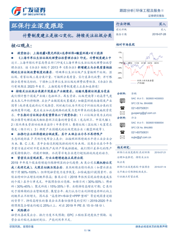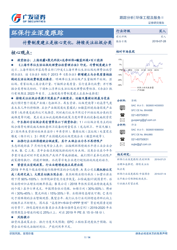 【广发证券】【20190728】环保行业深度跟踪:付费制度建立是核心变化,持续关注垃圾分类-14页