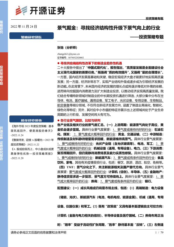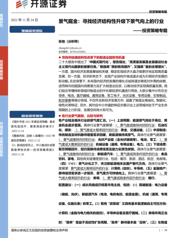 【开源证券】【20221124】投资策略专题:景气掘金,寻找经济结构性升级下景气向上的行业-79页