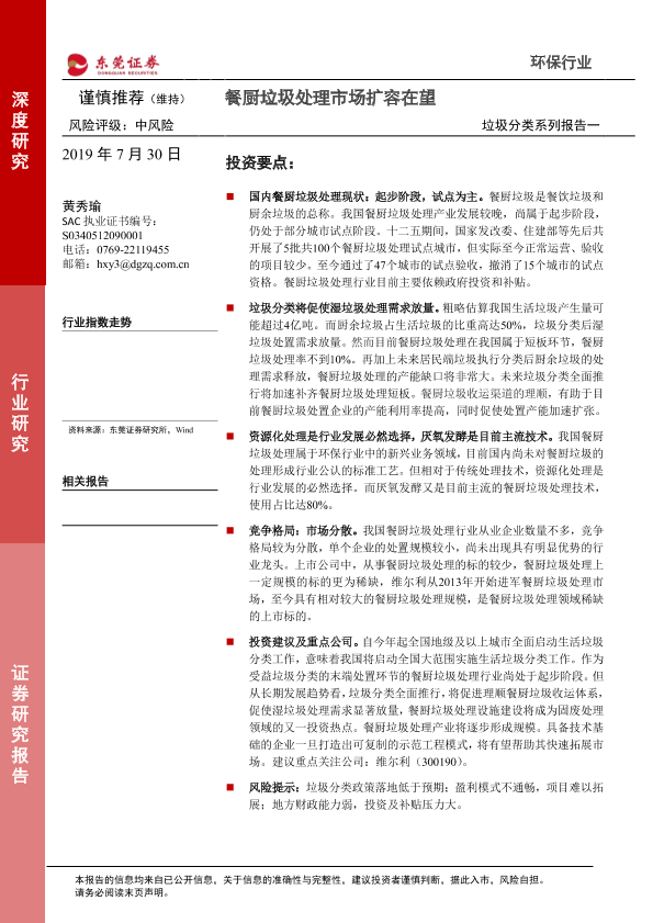 【东莞证券】【20190730】环保行业垃圾分类系列报告一:餐厨垃圾处理市场扩容在望-12页