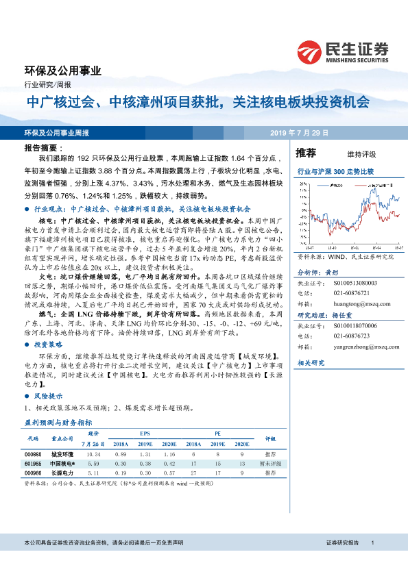 【民生证券】【20190729】环保及公用事业周报:中广核过会、中核漳州项目获批,关注核电板块投资机会-12页