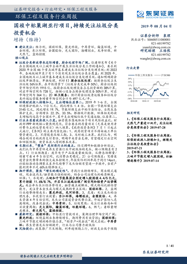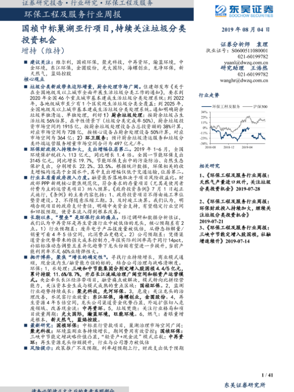 【东吴证券】【20190804】环保工程及服务行业周报:国祯中标巢湖亚行项目,持续关注垃圾分类投资机会-41页