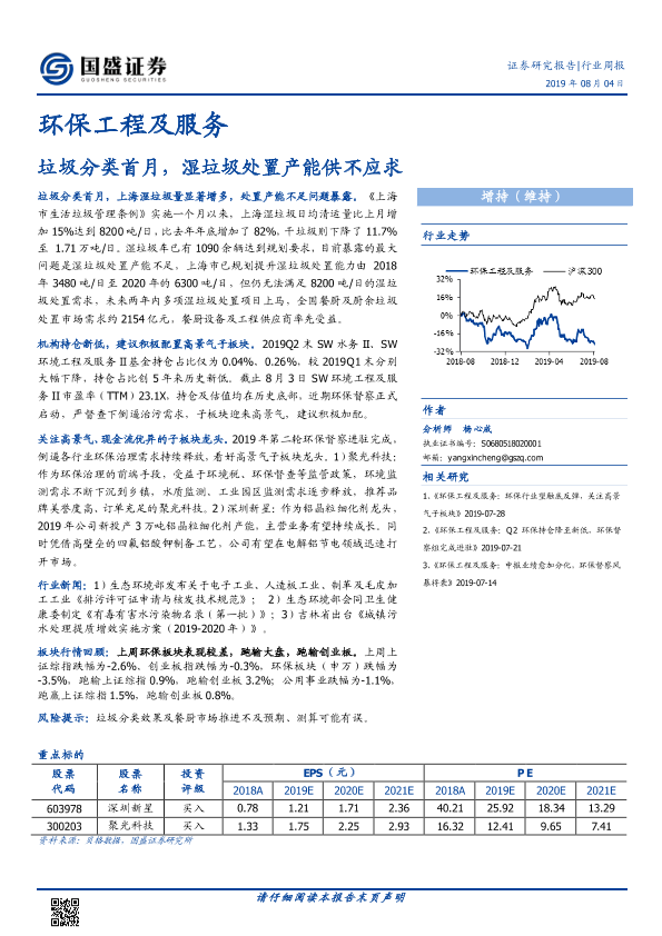 【国盛证券】【20190804】环保工程及服务行业周报:垃圾分类首月,湿垃圾处置产能供不应求-14页