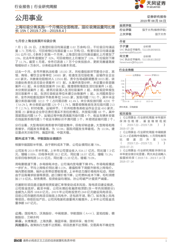 上海环保政策 公用事业 垃圾分类 湿垃圾清运 行业研究