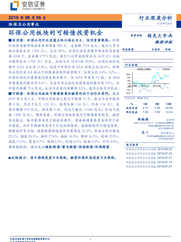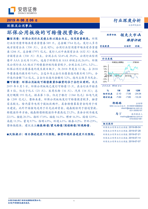 【安信证券】【20190806】环保及公用事业:环保公用板块的可转债投资机会-42页
