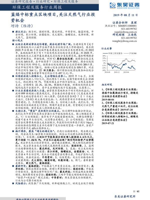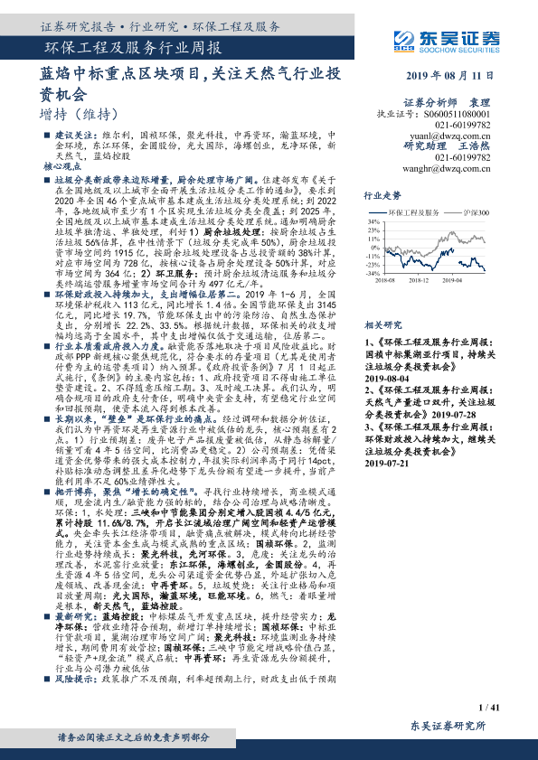 【东吴证券】【20190811】环保工程及服务行业周报:蓝焰中标重点区块项目,关注天然气行业投资机会-41页