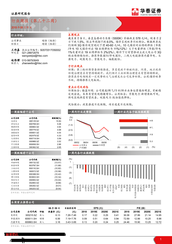 【华泰证券】【20190811】公用事业行业周报(第三十二周)-9页