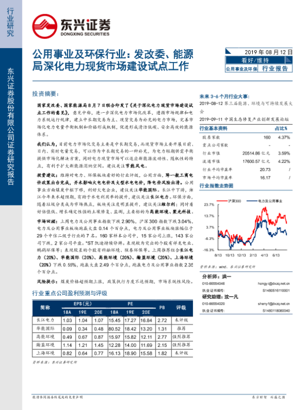 【东兴证券】【20190812】公用事业及环保行业:发改委、能源局深化电力现货市场建设试点工作-7页