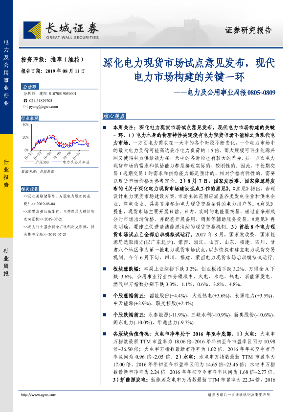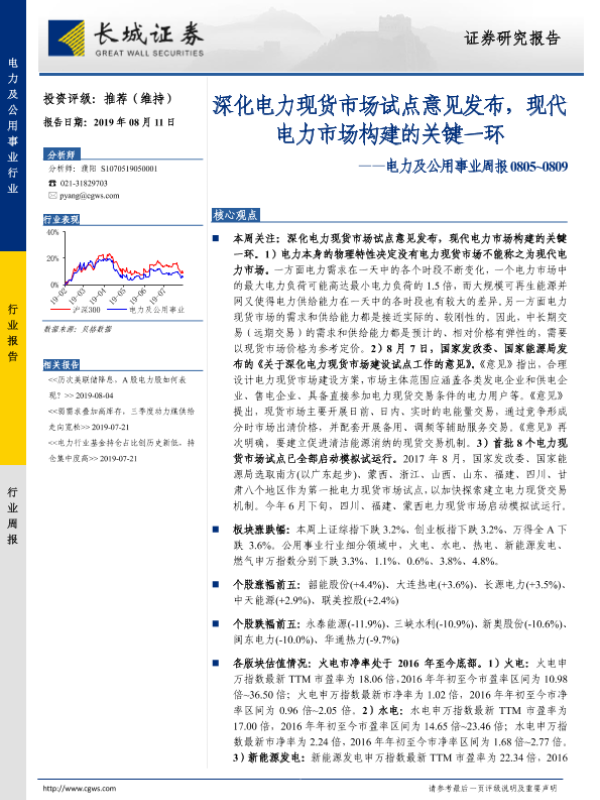 【长城证券】【20190811】深化电力现货市场试点意见发布,现代电力市场构建的关键一环-13页
