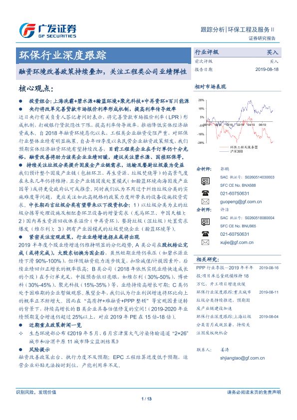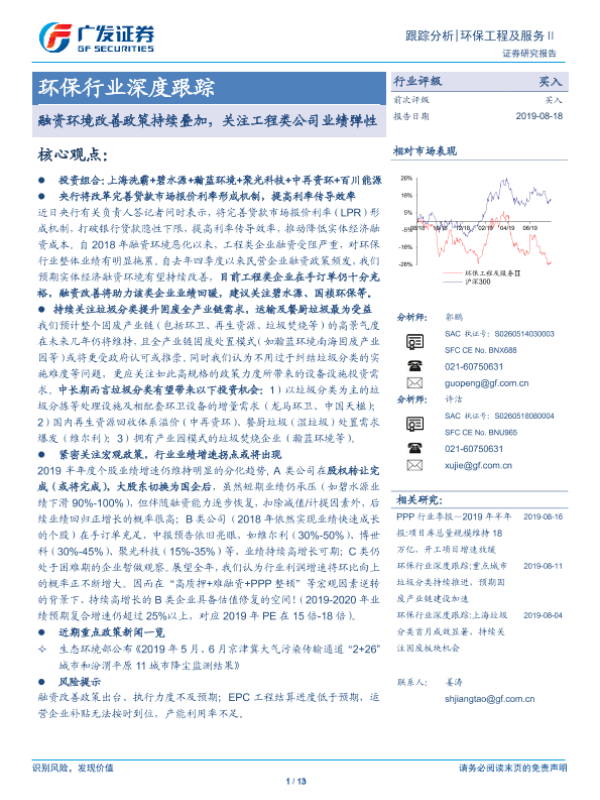 【广发证券】【20190818】环保行业深度跟踪:融资环境改善政策持续叠加,关注工程类公司业绩弹性-13页