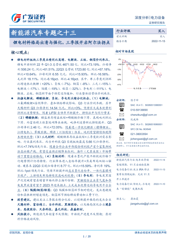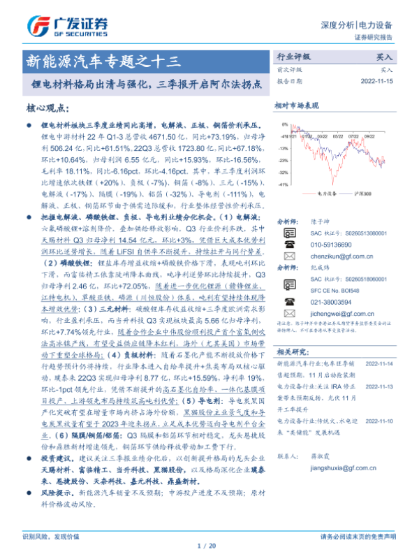 【广发证券】【20221115】新能源汽车专题之十三:锂电材料格局出清与强化,三季报开启阿尔法拐点-20页
