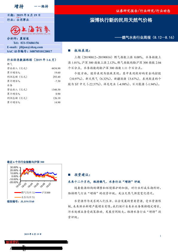 【上海证券】【20190819】燃气水务行业周报:淄博执行新的民用天然气价格-8页