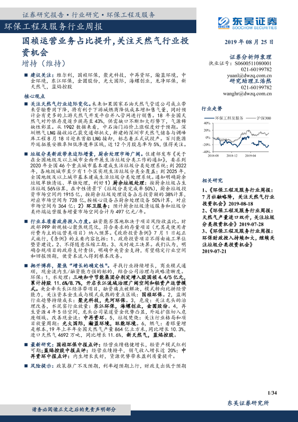 【东吴证券】【20190825】环保工程及服务行业周报:国祯运营业务占比提升,关注天然气行业投资机会-34页