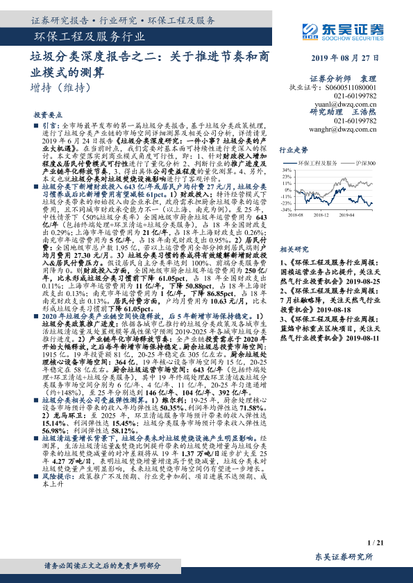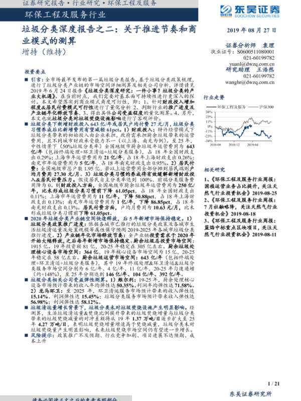 【东吴证券】【20190827】垃圾分类深度报告之二:关于推进节奏和商业模式的测算-21页