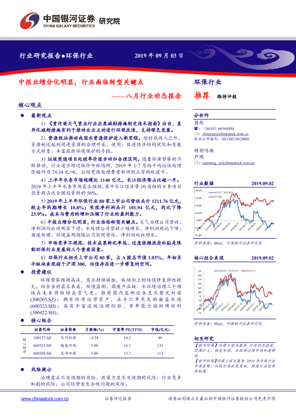 【银河证券】【20190903】环保行业中报业绩分化明显,行业面临转型关键点-26页