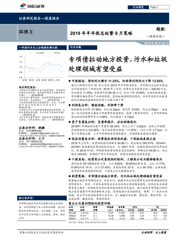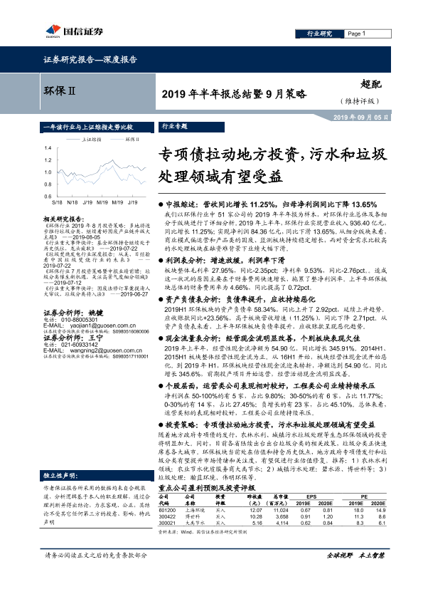 【国信证券】【20190905】2019年半年报总结暨9月策略:专项债拉动地方投资,污水和垃圾处理领域有望受益-16页