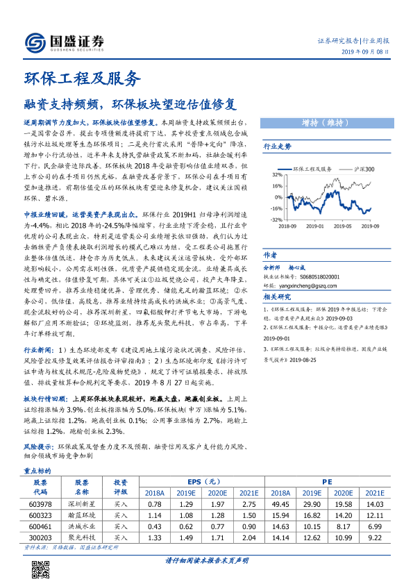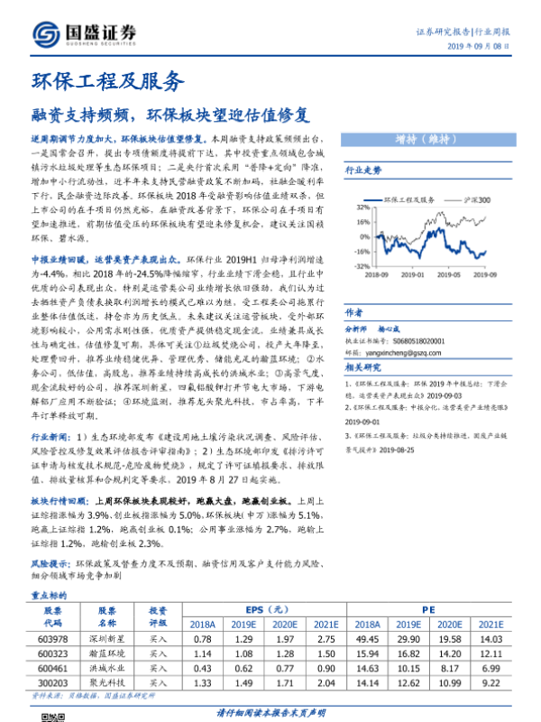 【国盛证券】【20190908】环保工程及服务行业周报:融资支持频频,环保板块望迎估值修复-11页