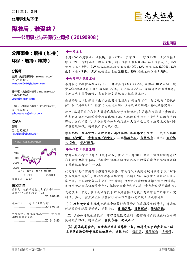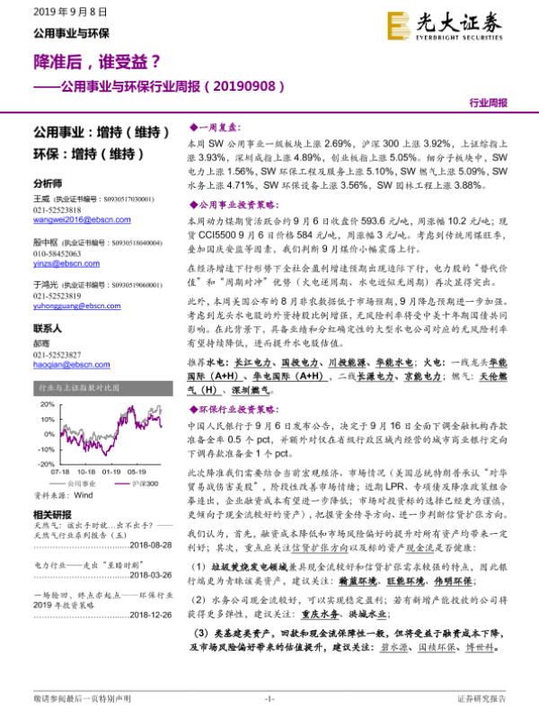 公用事业 宏观经济 投资策略 环保行业 降准