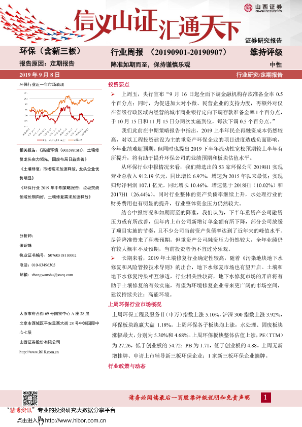 【山西证券】【20190908】环保(含新三板)行业周报:降准如期而至,保持谨慎乐观-11页