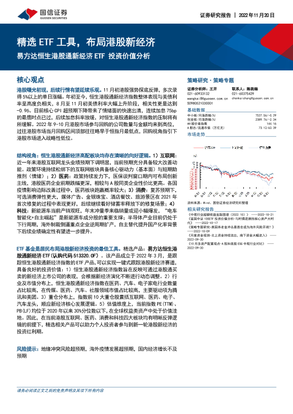 【国信证券】【20221120】易方达恒生港股通新经济ETF投资价值分析:精选ETF工具,布局港股新经济-20页