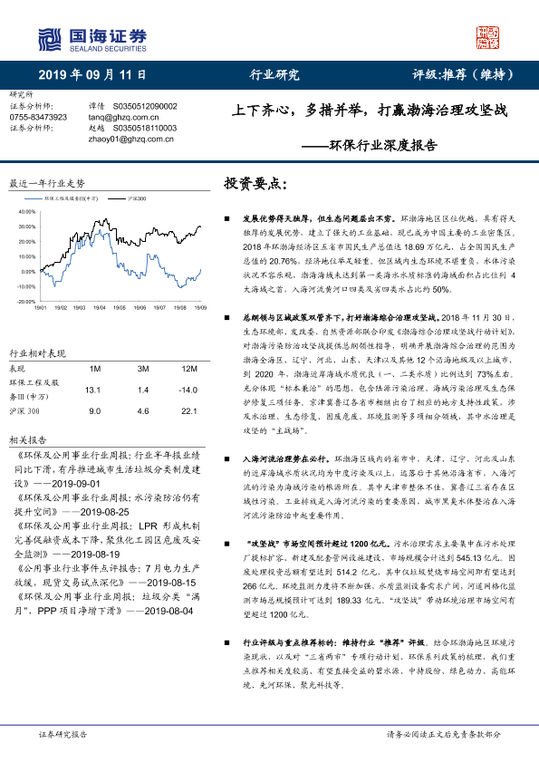 【国海证券】【20190911】环保行业深度报告:上下齐心,多措并举,打赢渤海治理攻坚战-25页