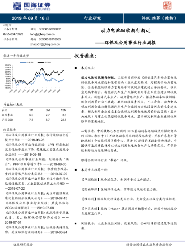 【国海证券】【20190916】环保及公用事业行业周报:动力电池回收渐行渐近-9页