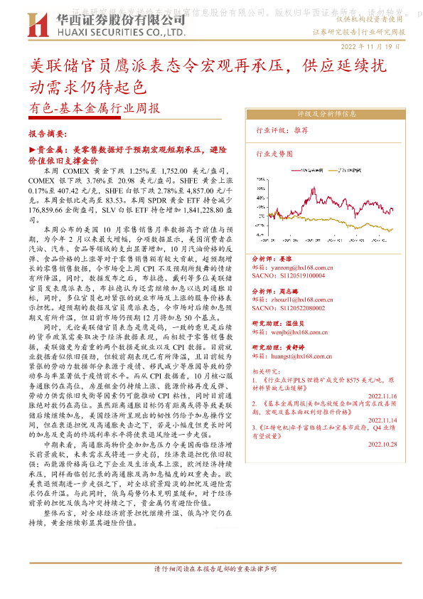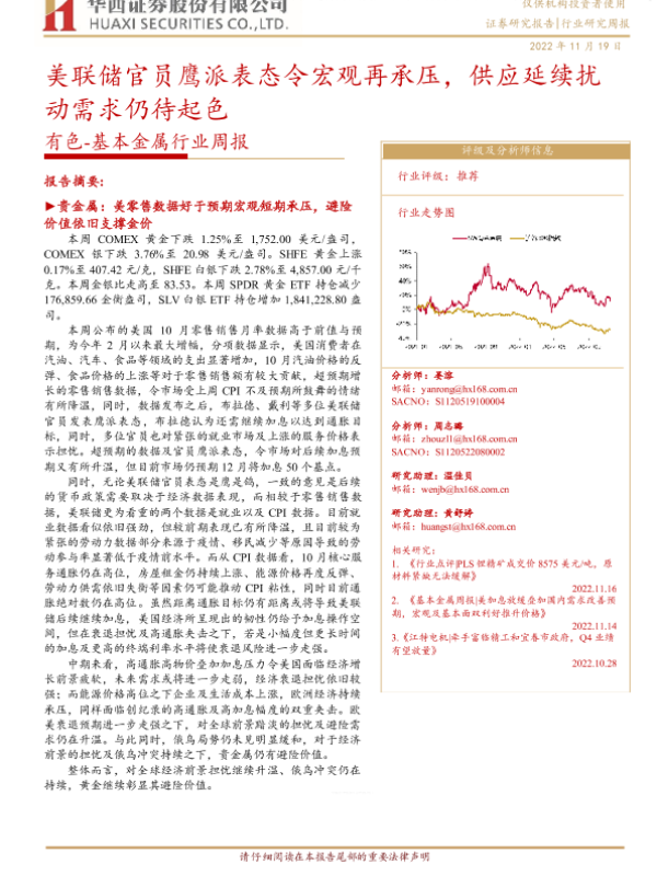 【华西证券】【20221119】有色-基本金属行业周报:美联储官员鹰派表态令宏观再承压,供应延续扰动需求仍待起色-26页