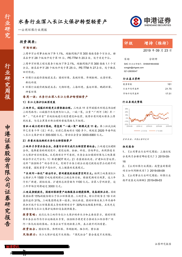 【申港证券】【20190923】水务行业深入长江大保护转型轻资产-22页