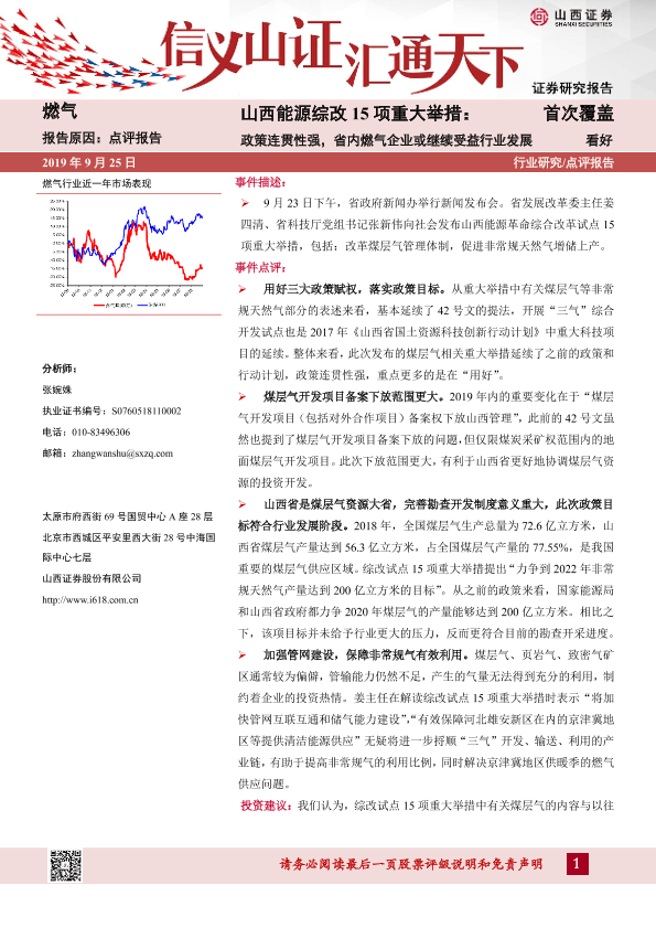 【山西证券】【20190925】山西能源综改15项重大举措:政策连贯性强,省内燃气企业或继续受益行业发展-7页