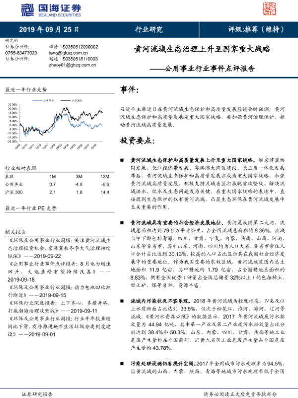 公用事业 国家战略 污染治理 生态保护 黄河流域