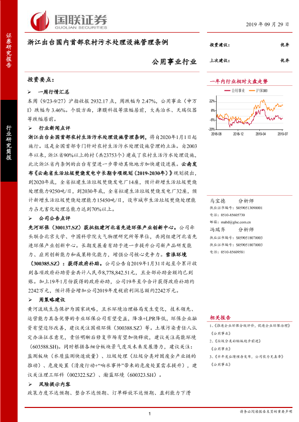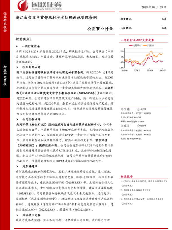 【国联证券】【20190929】浙江出台国内首部农村污水处理设施管理条例-11页