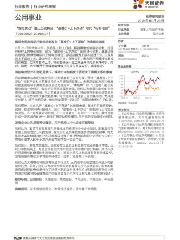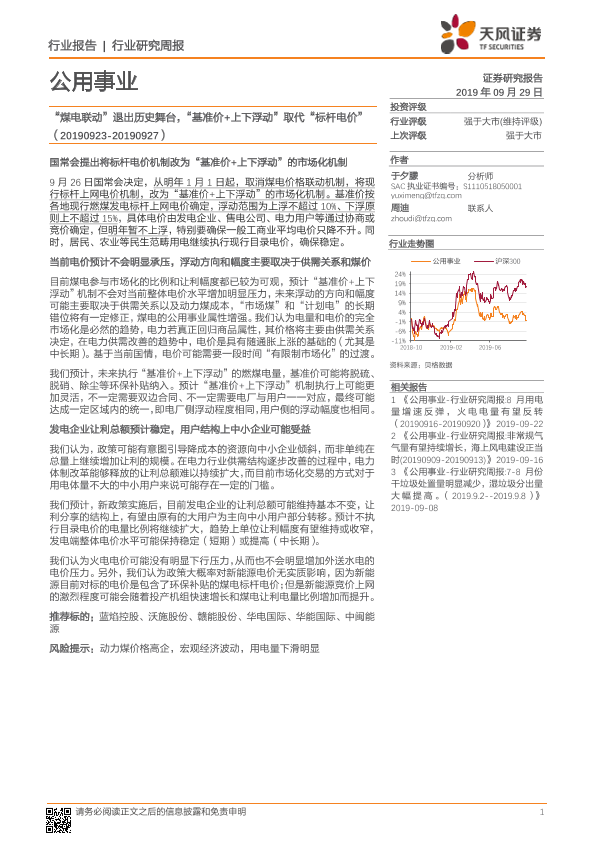 【天风证券】【20190929】‘煤电联动’退出历史舞台,‘基准价+上下浮动’取代‘标杆电价’-7页