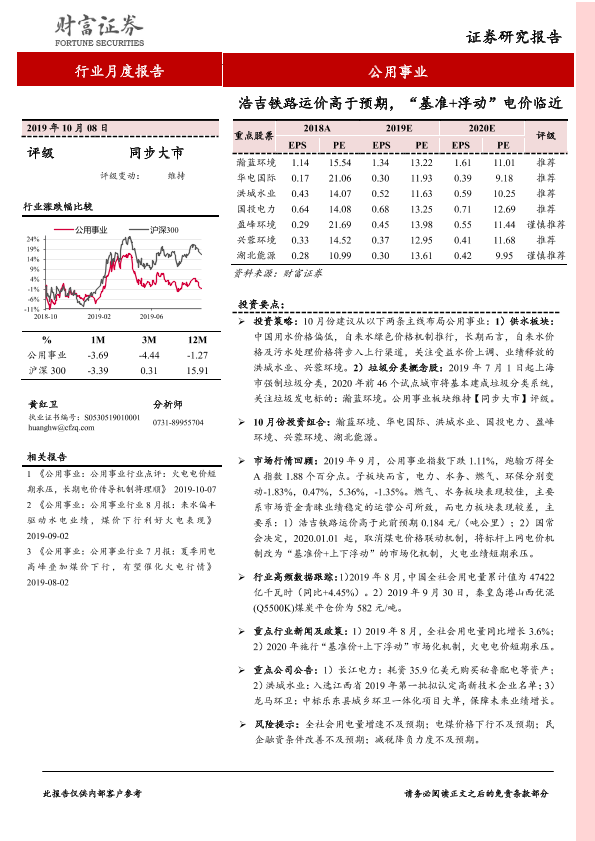 【财信证券】【20191008】公用事业行业9月报:浩吉铁路运价高于预期,“基准+浮动”电价临近-12页