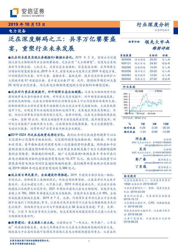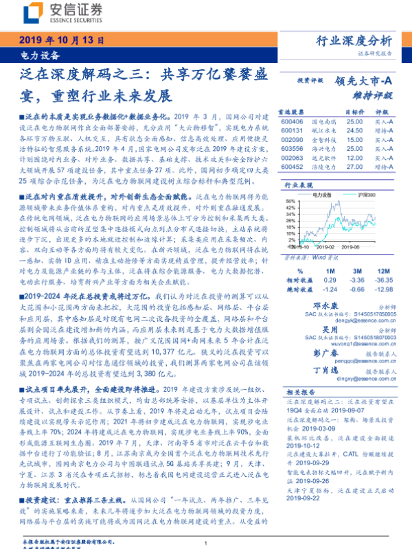 【安信证券】【20191013】电力设备行业深度分析:泛在深度解码之三:共享万亿饕餮盛宴,重塑行业未来发展-70页