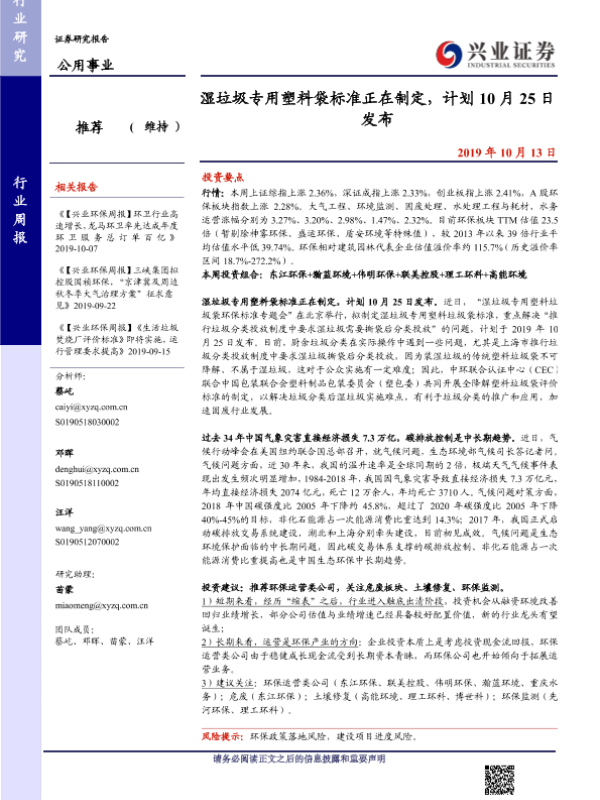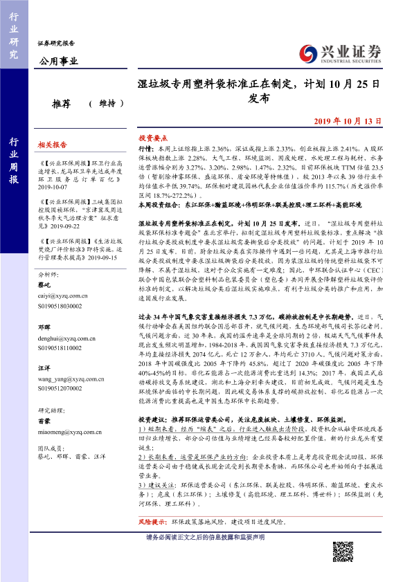 【兴业证券】【20191013】湿垃圾专用塑料袋标准正在制定,计划10月25日发布-10页