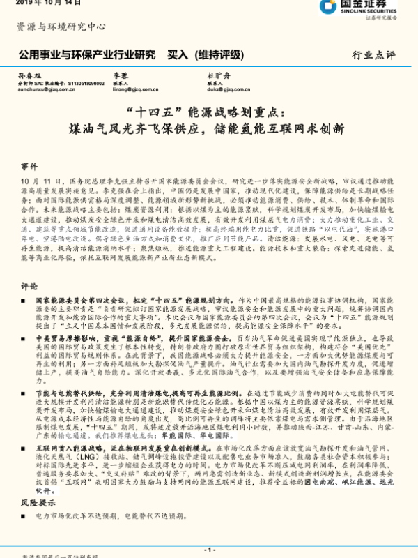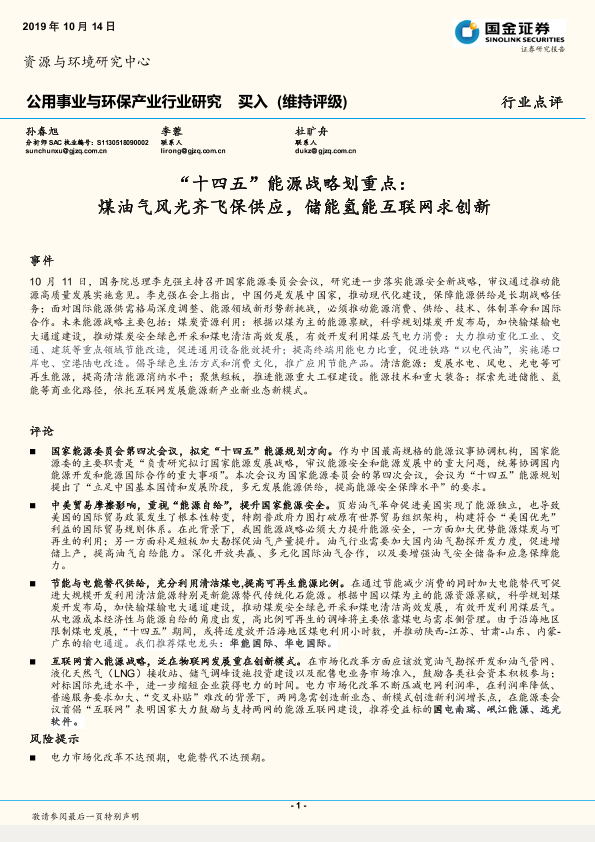 【国金证券】【20191014】'十四五'能源战略划重点:煤油气风光齐飞保供应,储能氢能互联网求创新-3页
