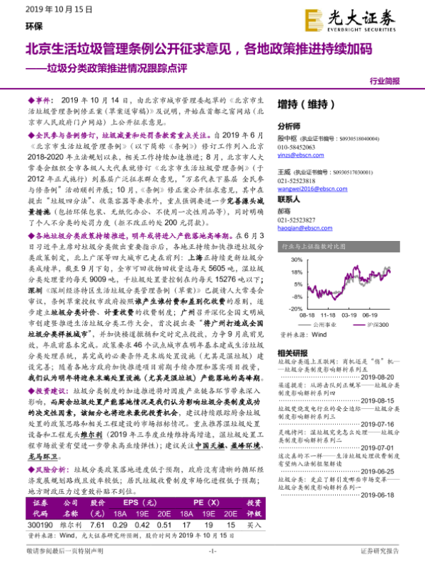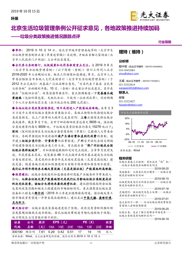 【光大证券】【20191015】垃圾分类政策推进情况跟踪点评:北京生活垃圾管理条例公开征求意见,各地政策推进持续加码-3页