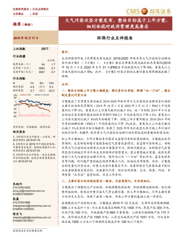 【海通证券】【20191017】大气污染攻坚方案发布,整体目标高于上年方案,细则体现对政府管理更高要求-4页