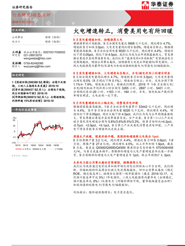 【华泰证券】【20191020】公用事业、电力Ⅱ:火电增速转正,消费类用电有所回暖-5页