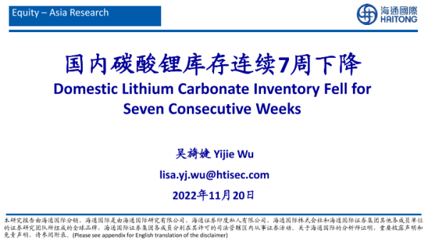 【海通国际】【20221120】国内碳酸锂库存连续7周下降-28页
