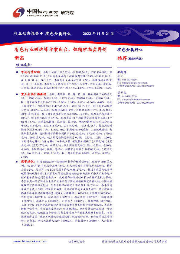 【银河证券】【20221121】有色行业碳达峰方案出台,锂精矿拍卖再创新高-22页