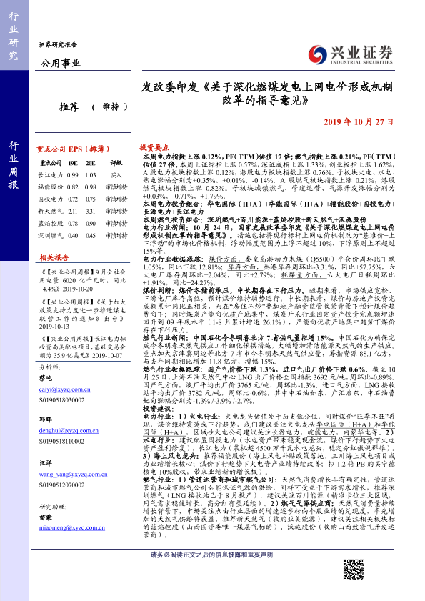兴业证券 电力热力燃气水生产 2019年 PDF 1019.32 KB