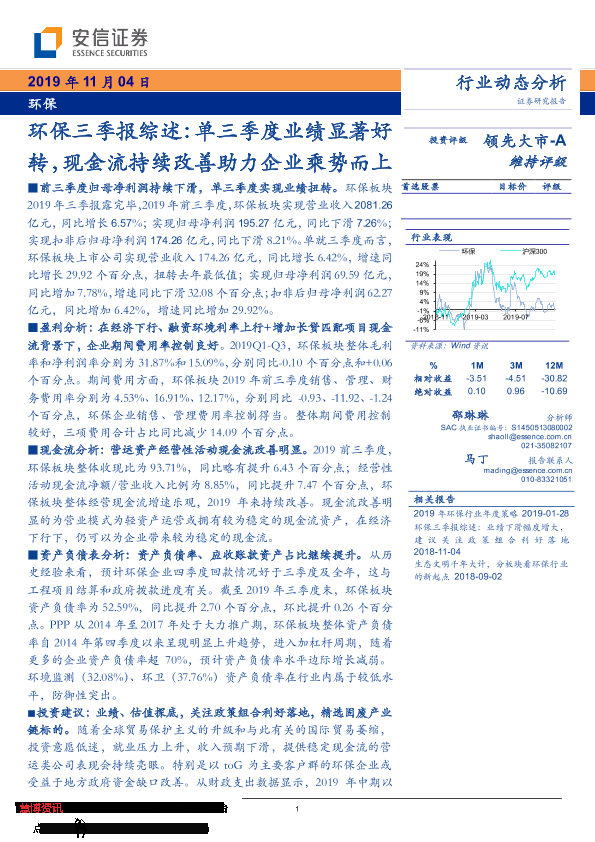 【安信证券】【20191104】环保三季报综述:单三季度业绩显著好转,现金流持续改善助力企业乘势而上-16页