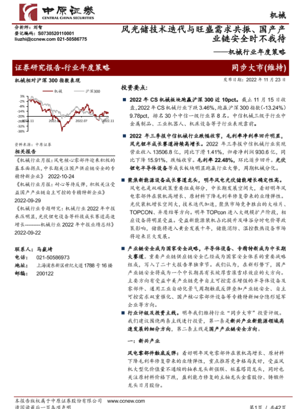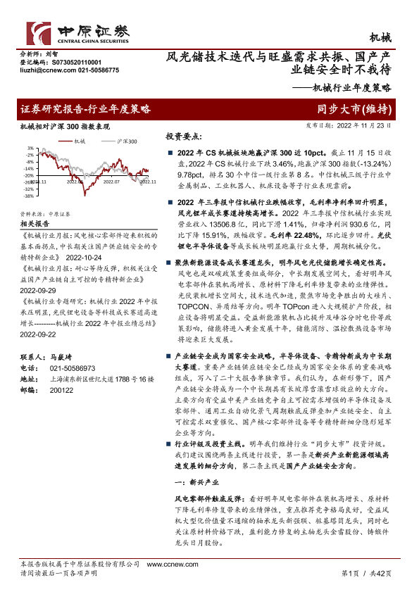 【中原证券】【20221123】机械行业年度策略:风光储技术迭代与旺盛需求共振、国产产业链安全时不我待-42页
