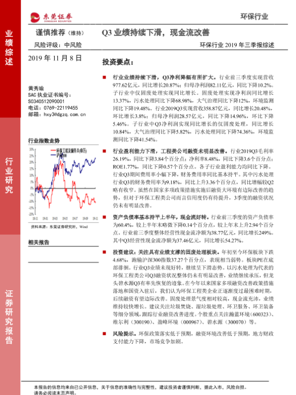 三季报 业绩下滑 固废处理 环保行业 现金流改善