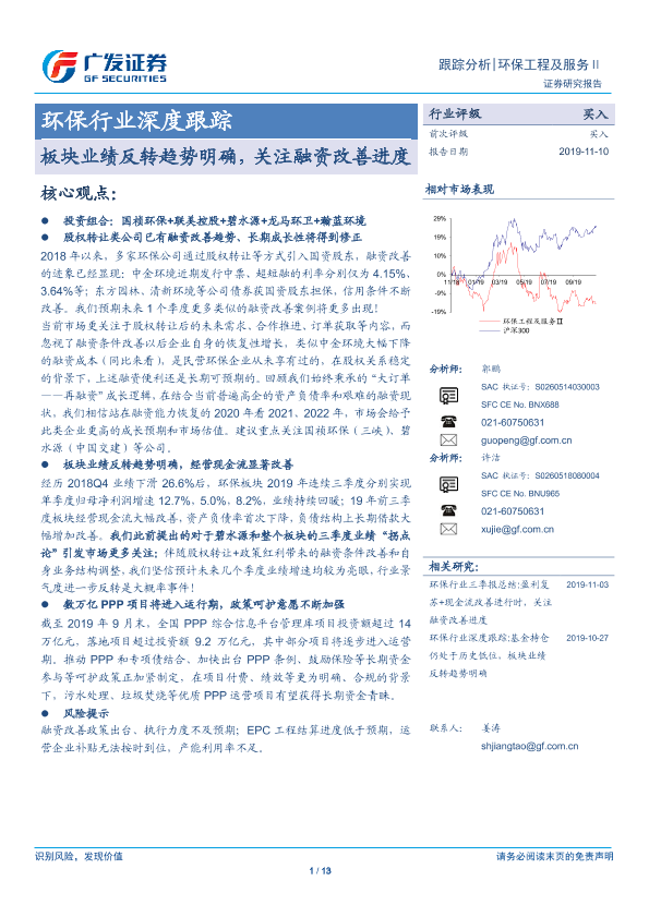 【广发证券】【20191110】环保行业深度跟踪:板块业绩反转趋势明确,关注融资改善进度-13页