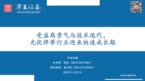 【华安证券】【20221119】机械行业:受益高景气与技术迭代,光伏焊带行业迎来快速成长期-30页